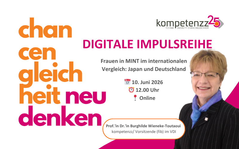 Mit einem neuen Schwerpunkt lädt die digitale Impulsreihe "Chancengleichheit neu denken" zur nächsten Veranstaltung am 10. Juni 2026 ein – diesmal zum Thema Frauen in MINT im internationalen Vergleich: Japan und Deutschland.